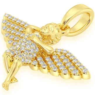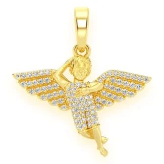 - Its open-winged cherub design is adorned with 0.33ctw VS diamonds, adding a touch of luxury to the pendant’s striking design.