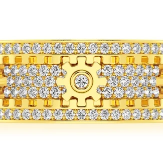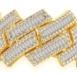 This piece is handcrafted and manufactured by Intrigue. All of the diamonds are hand-set by a master diamond setter in the highest quality craftsmanship. This piece is made of solid gold.