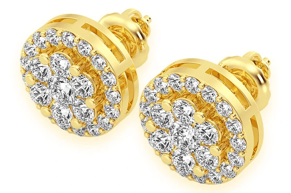 Halo Flower Diamond Earrings Solid Gold 2.00ctw
