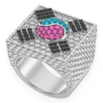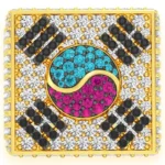 This Intrigue Korean Flag Signet Ring is made of White, Rose, and Yellow gold.