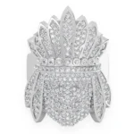 This piece is handcrafted and manufactured by Intrigue. The diamonds are hand-set by a master diamond setter in the highest quality craftsmanship.