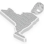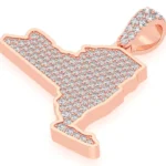 - It features an intricate design that accurately depicts the shape of the state and is adorned with 1.00ctw VS diamonds that extend up to the bail.