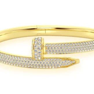 This piece is handcrafted and manufactured by Intrigue. The diamonds are hand-set by a master diamond setter in the highest quality craftsmanship. This piece is made of solid gold.