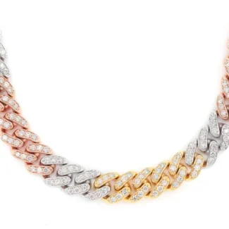 8MM Miami Cuban Link Diamond Necklace 10k Tri Tone Solid Gold 10.00ctw